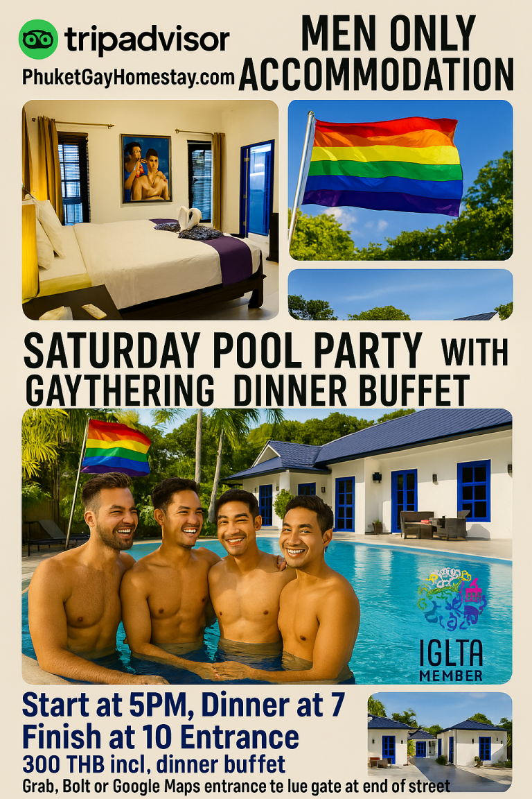 #IGLTA #GayTravel #PhuketGayHomestay #LGBTQfriendly #GayThailand #Gaythering #GayMenOnly #InclusiveTravel #PhuketLGBT #GayPoolParty #Togayther